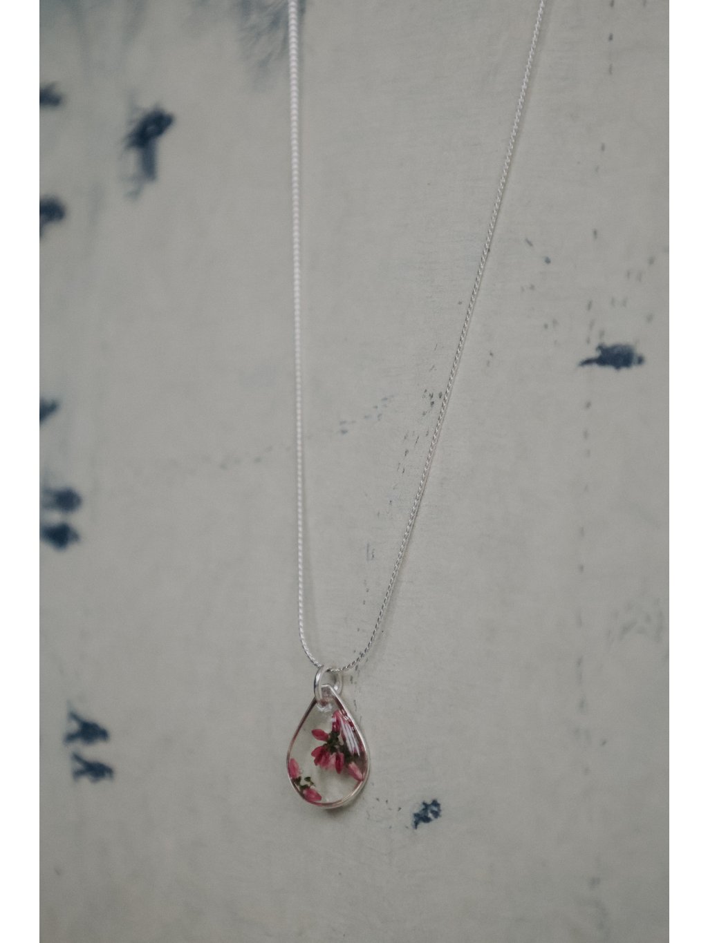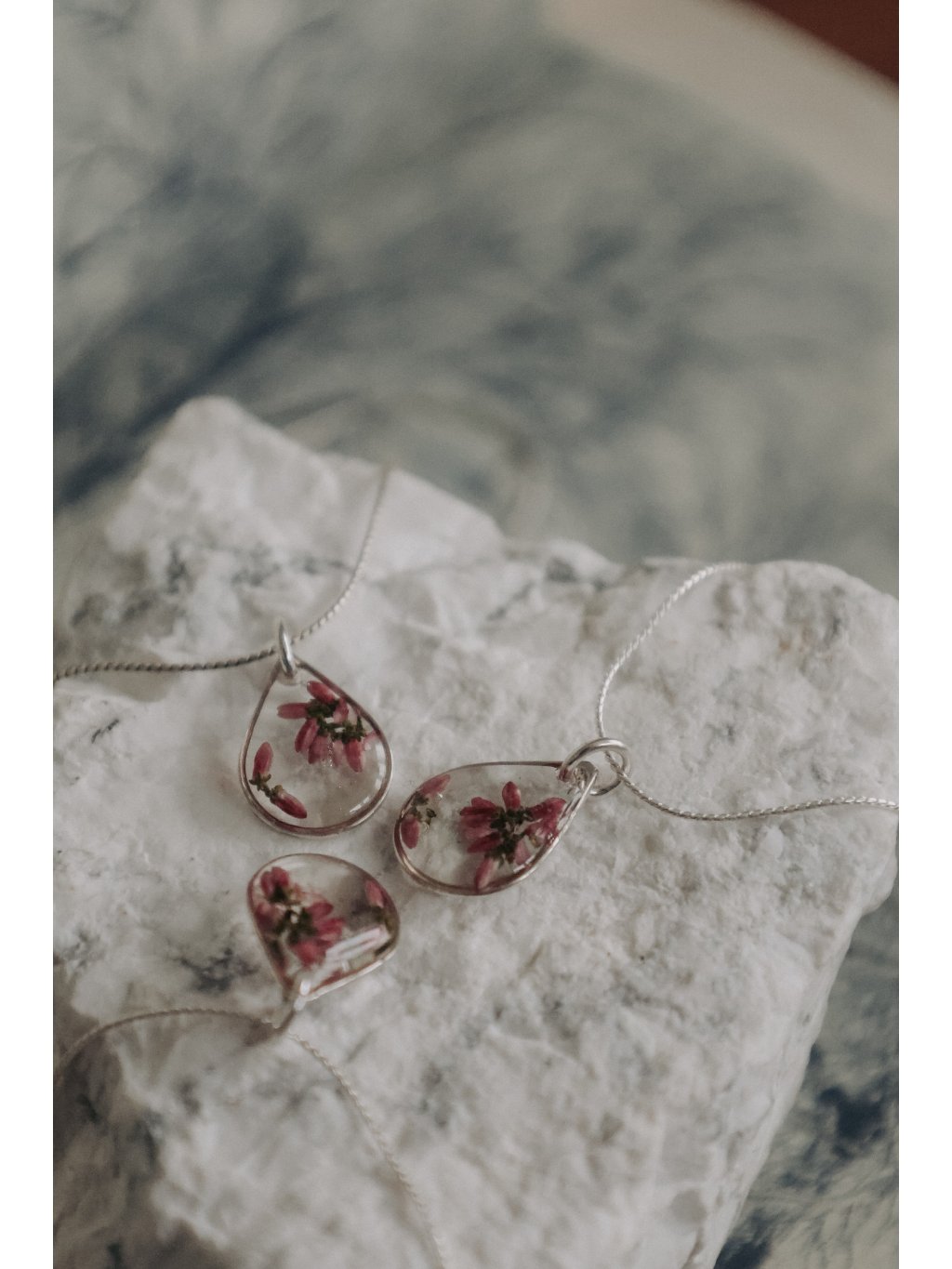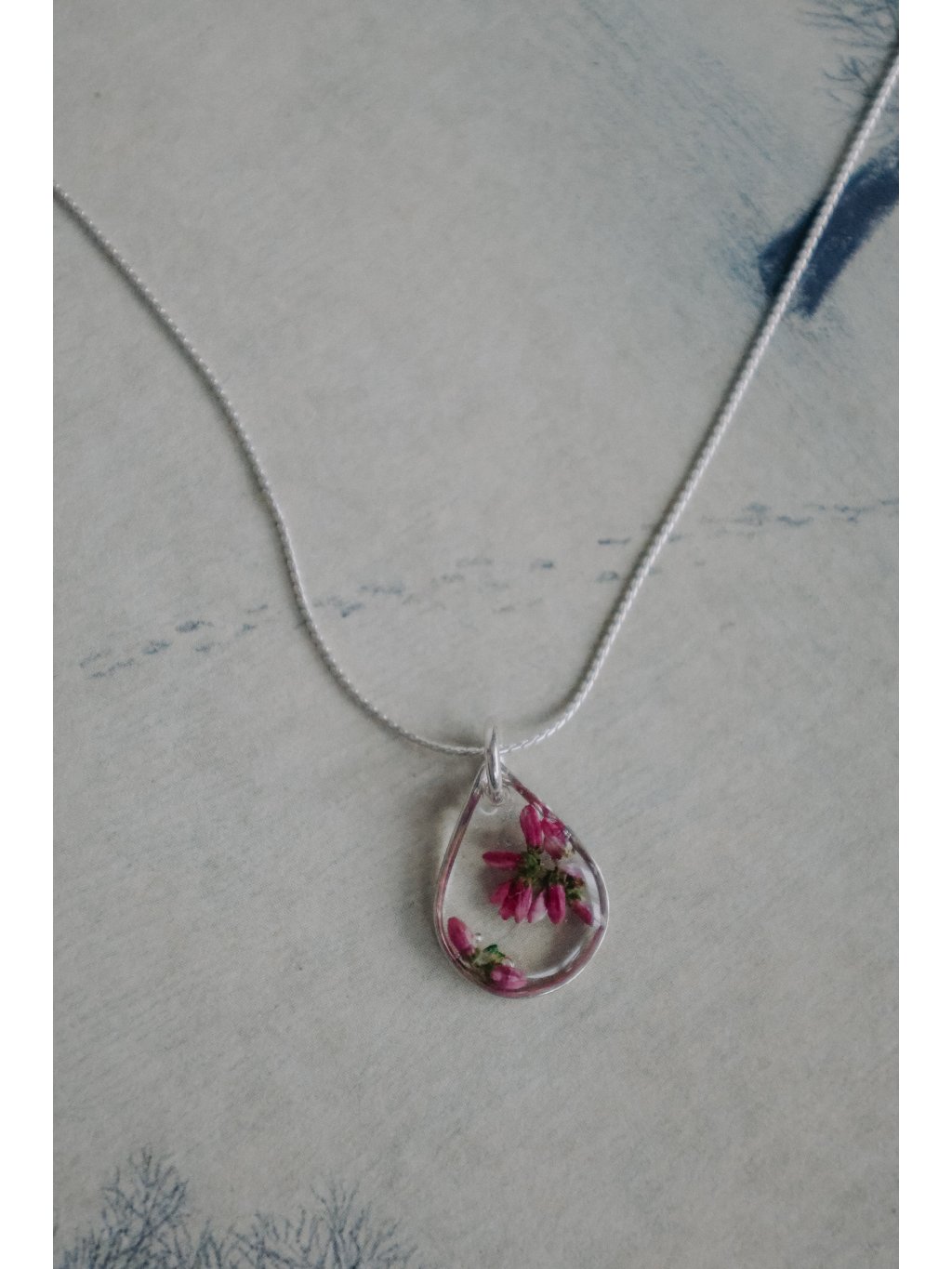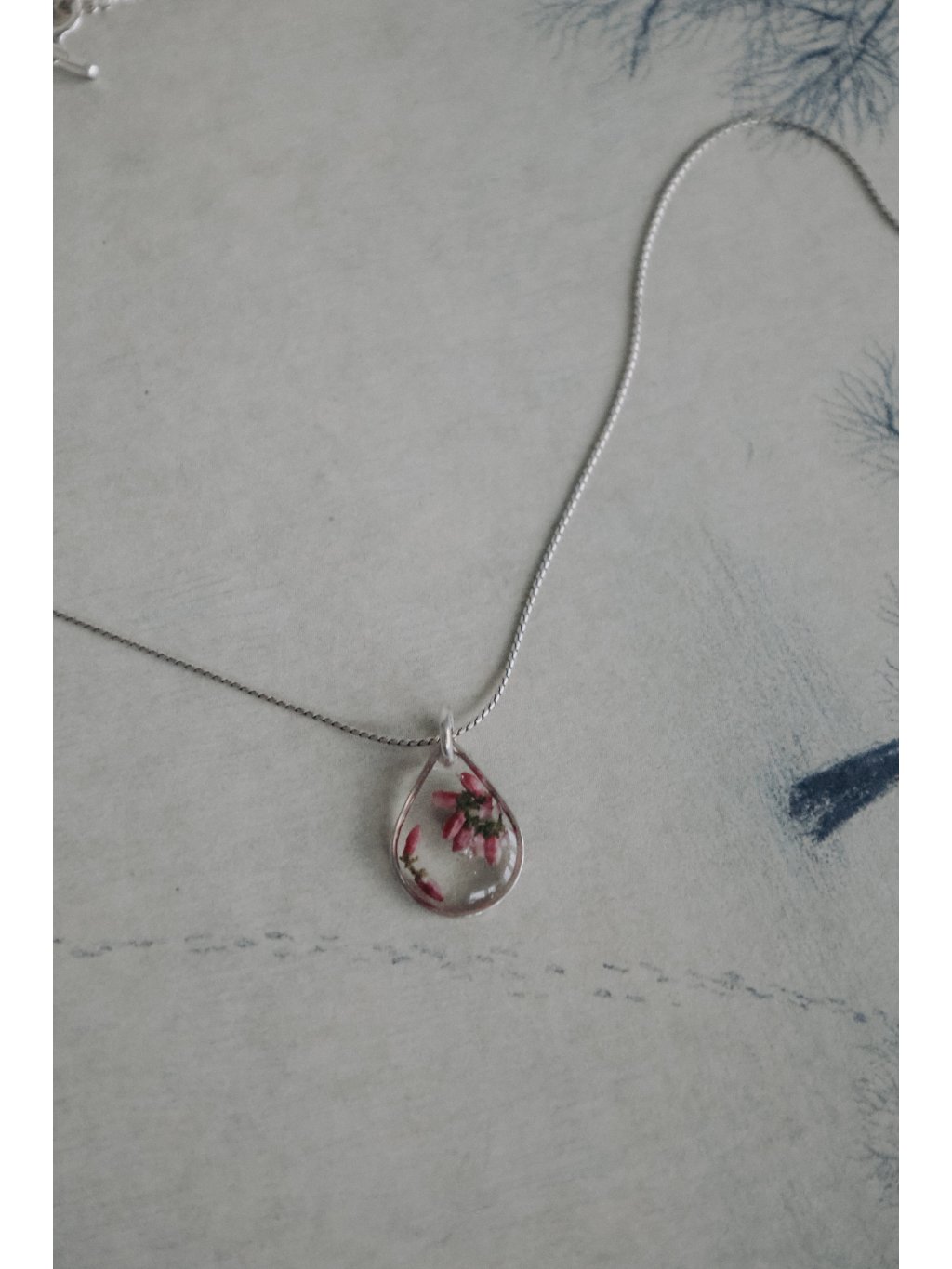 Ručně vyráběný náhrdelník Kapička je jemný a elegantním kousek pro Vás. Je zdobeny sušenými vřesovými kvítky.