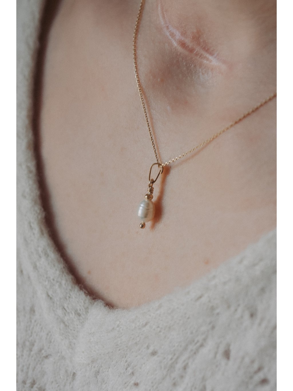 Jemný minimalistický náhrdelník Ophira s pravou sladkovodní perlou.