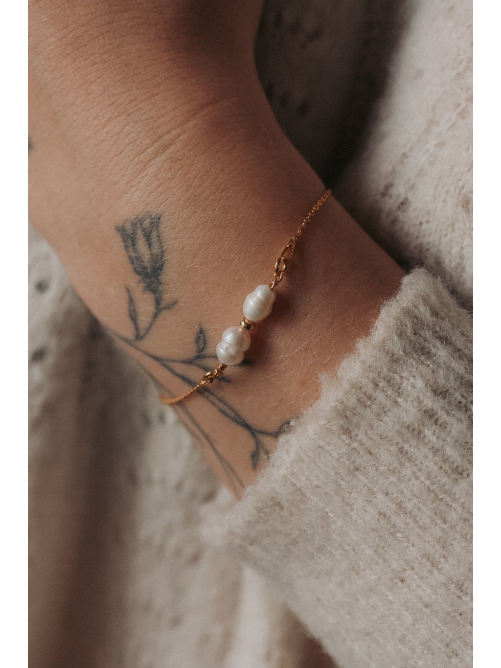 Jemný, elegantní a minimalistický, přesně tak bych popsala náramek Saphra. Je tvořený 2 sladkovodními perlami, mezi kterými je umístěn stříbrný korálek. Samotný náramek má i prodlužovací řetízek, vy si tak budete sami moci zvolit jeho délku, aby vám na ruce seděl co nejlépe.