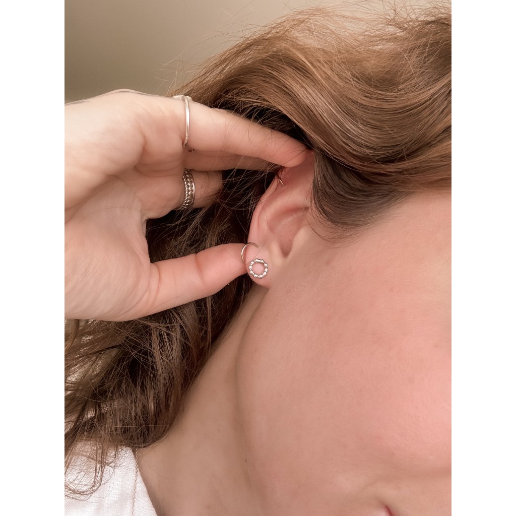 Kruhové kuličkové náušnice Rozetka jsou vyrobeny ze stříbra o ryzosti AG 925/1000.